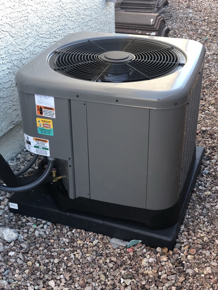 Henderson, NV - New installation of a RUUD brand complete split system heat pump A/C unit.